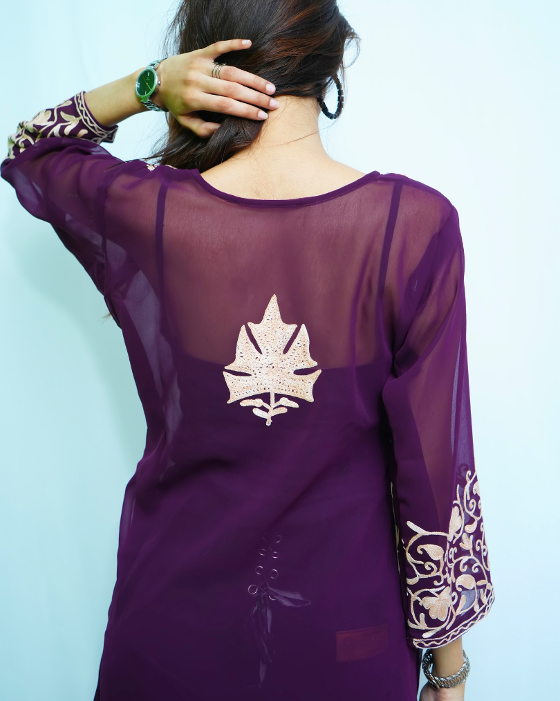 Kaira Wine Color Heavy Embroidered Georgette Kurti