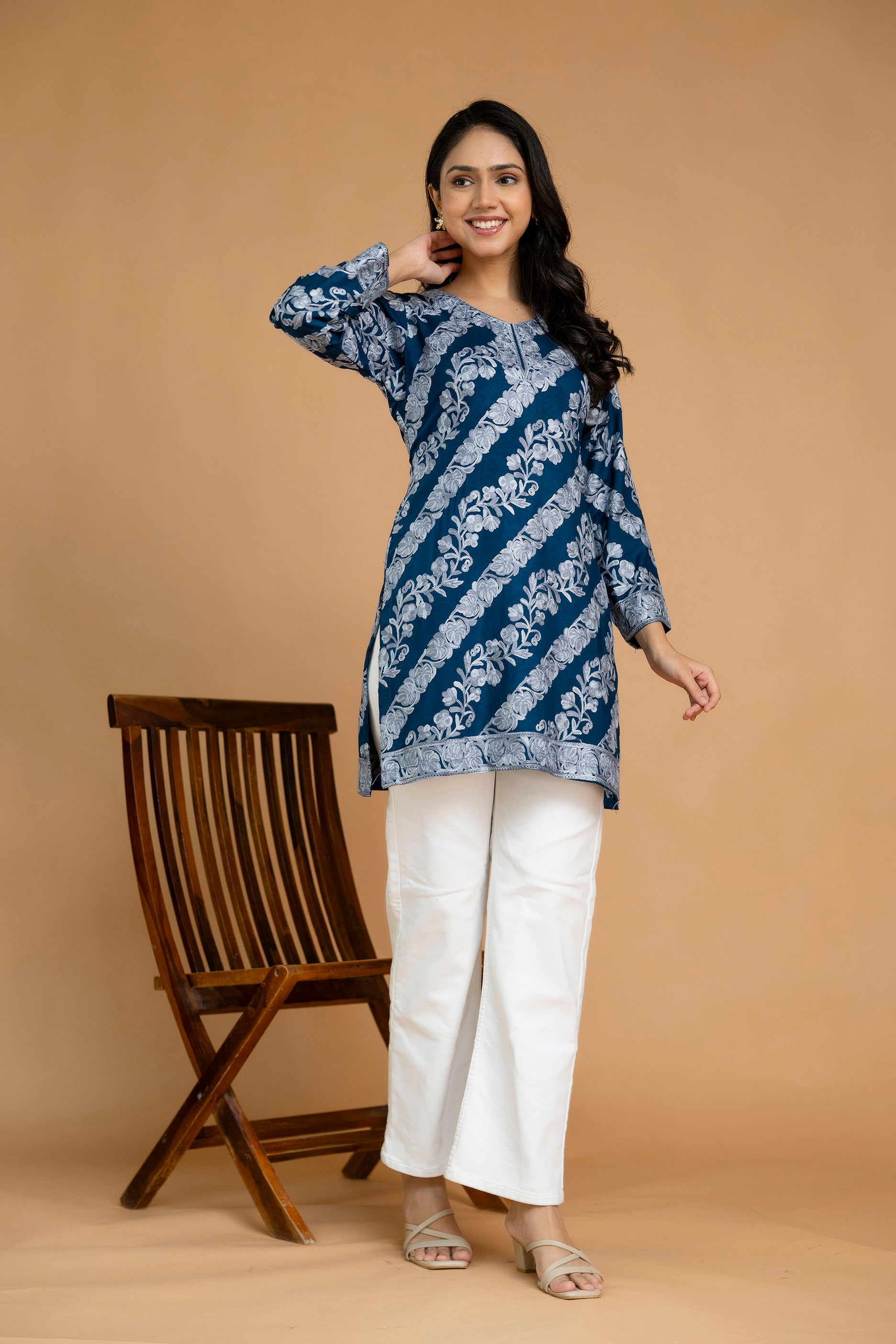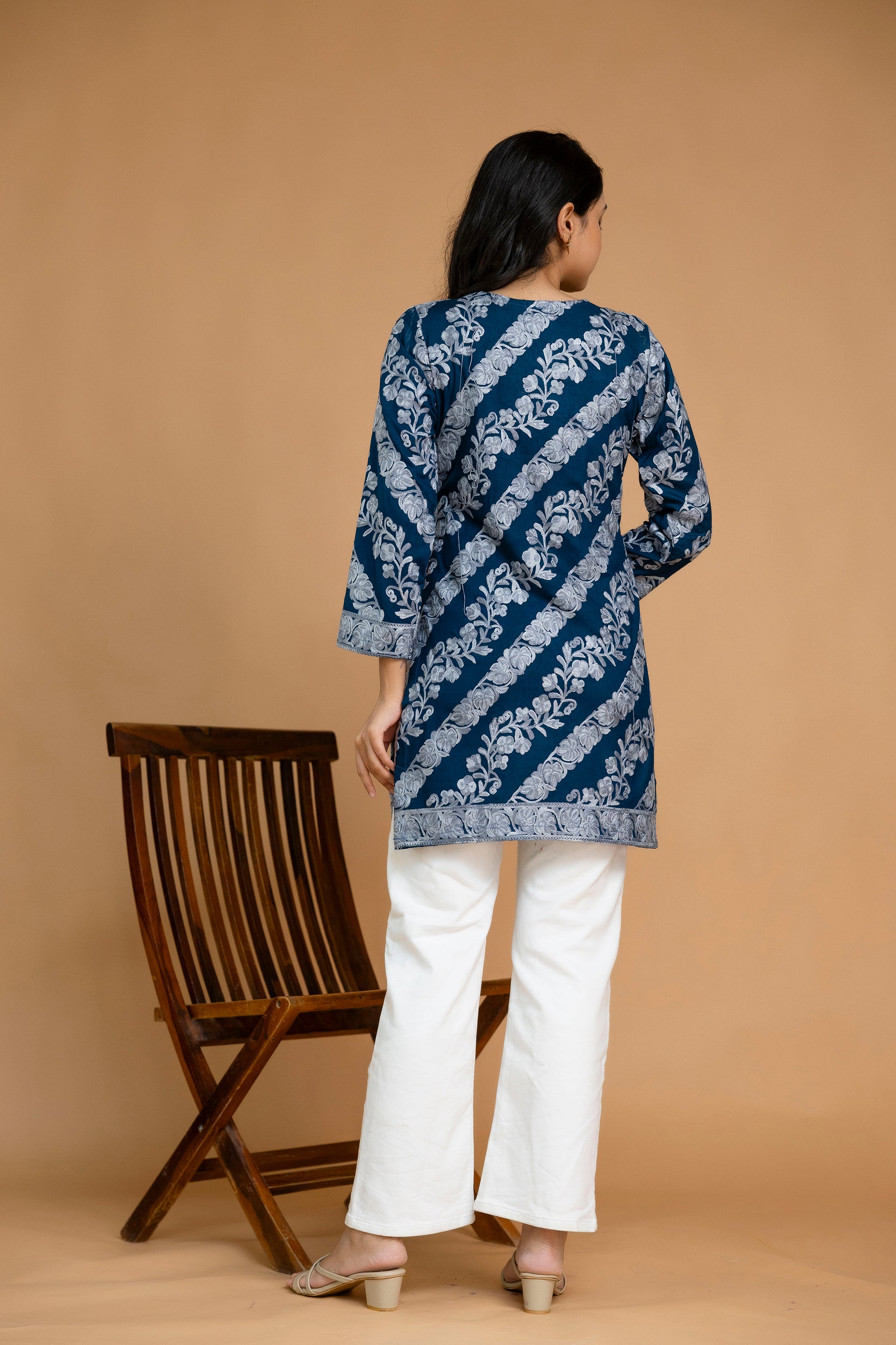 TOK Aari Embroidered Cotton Solid Women's Short Kurta - Blue