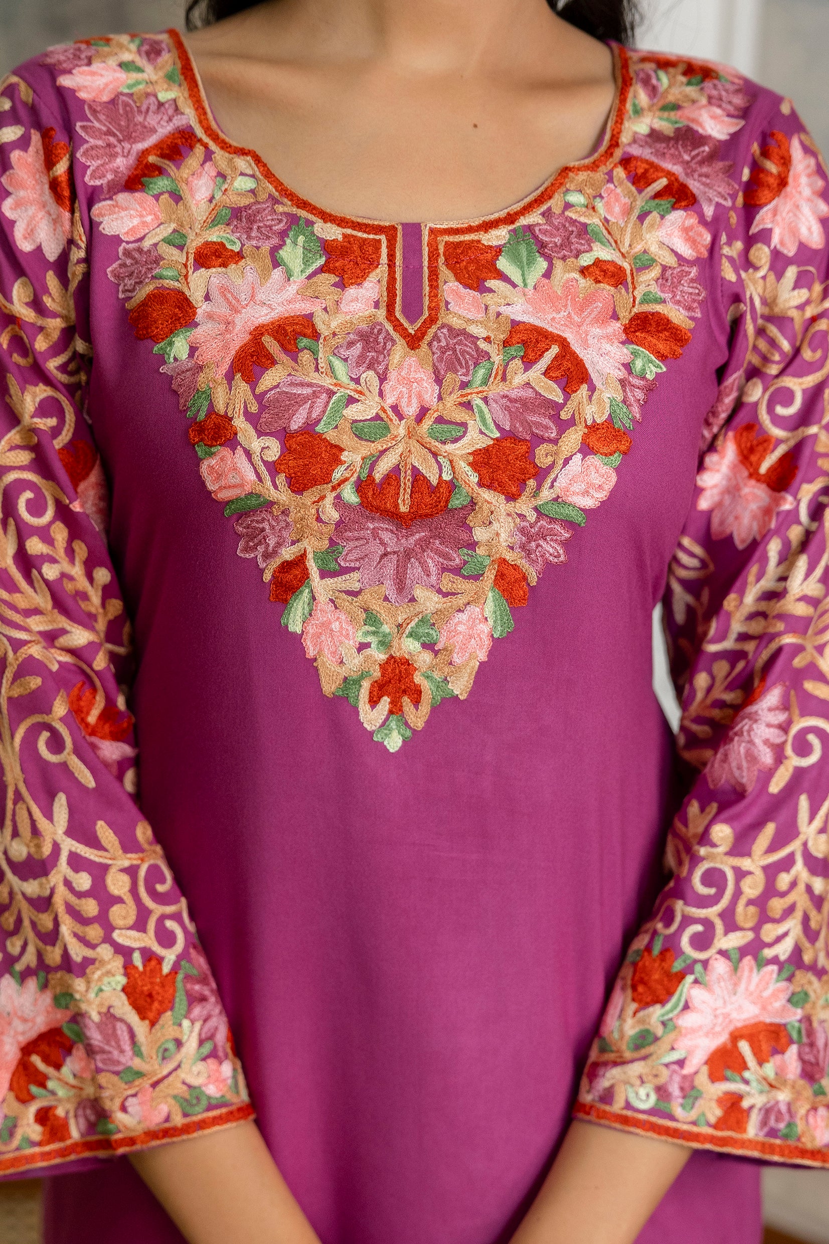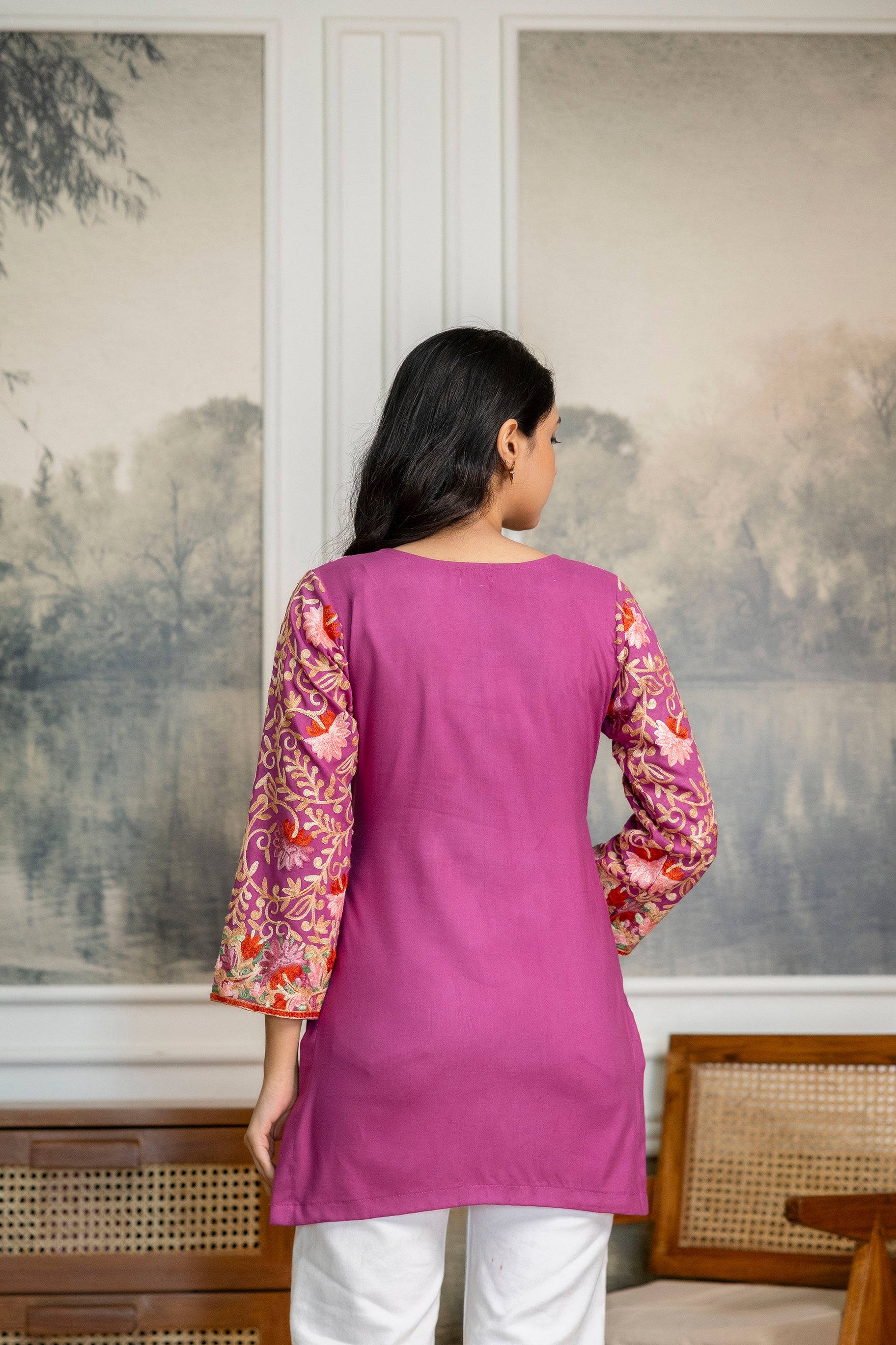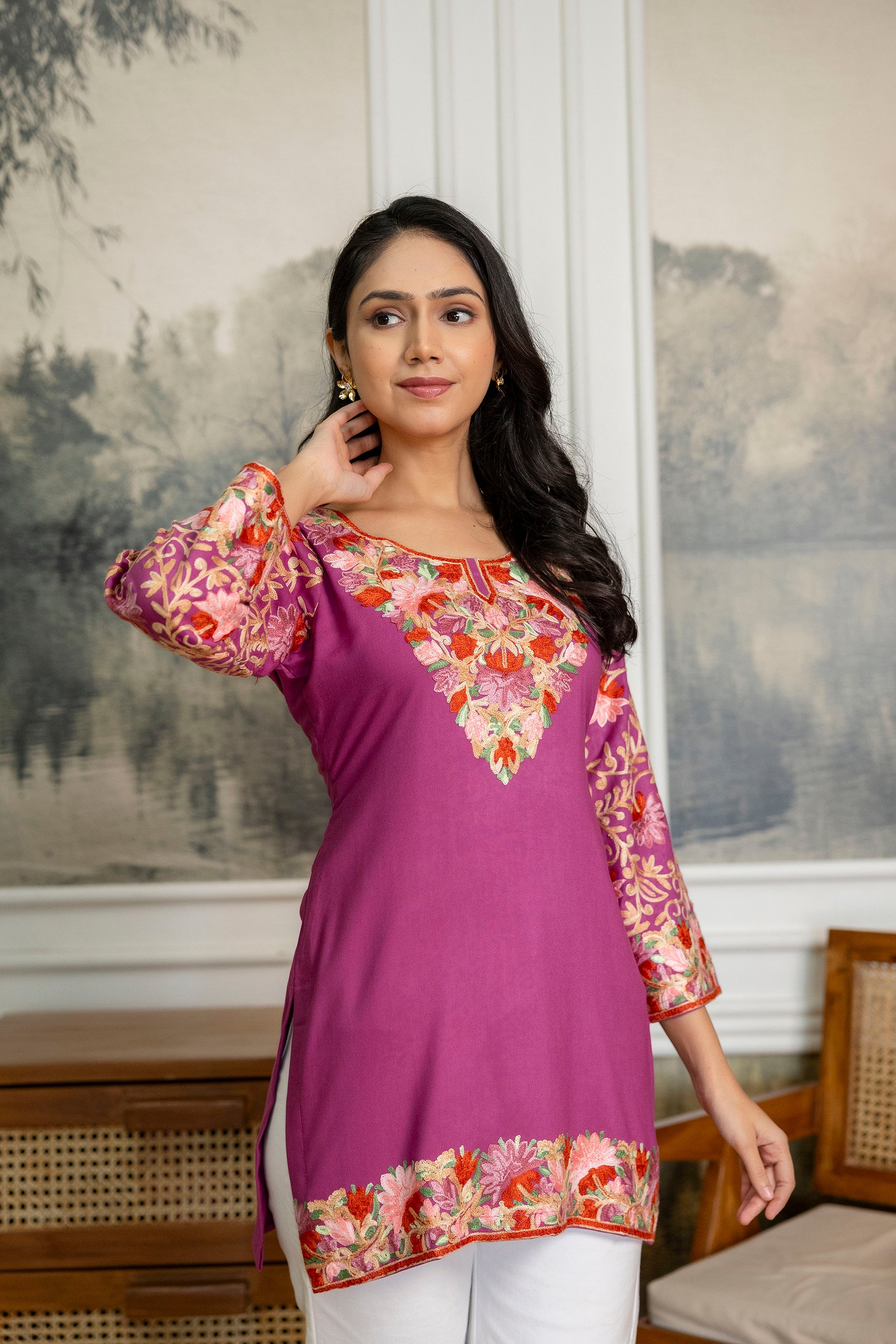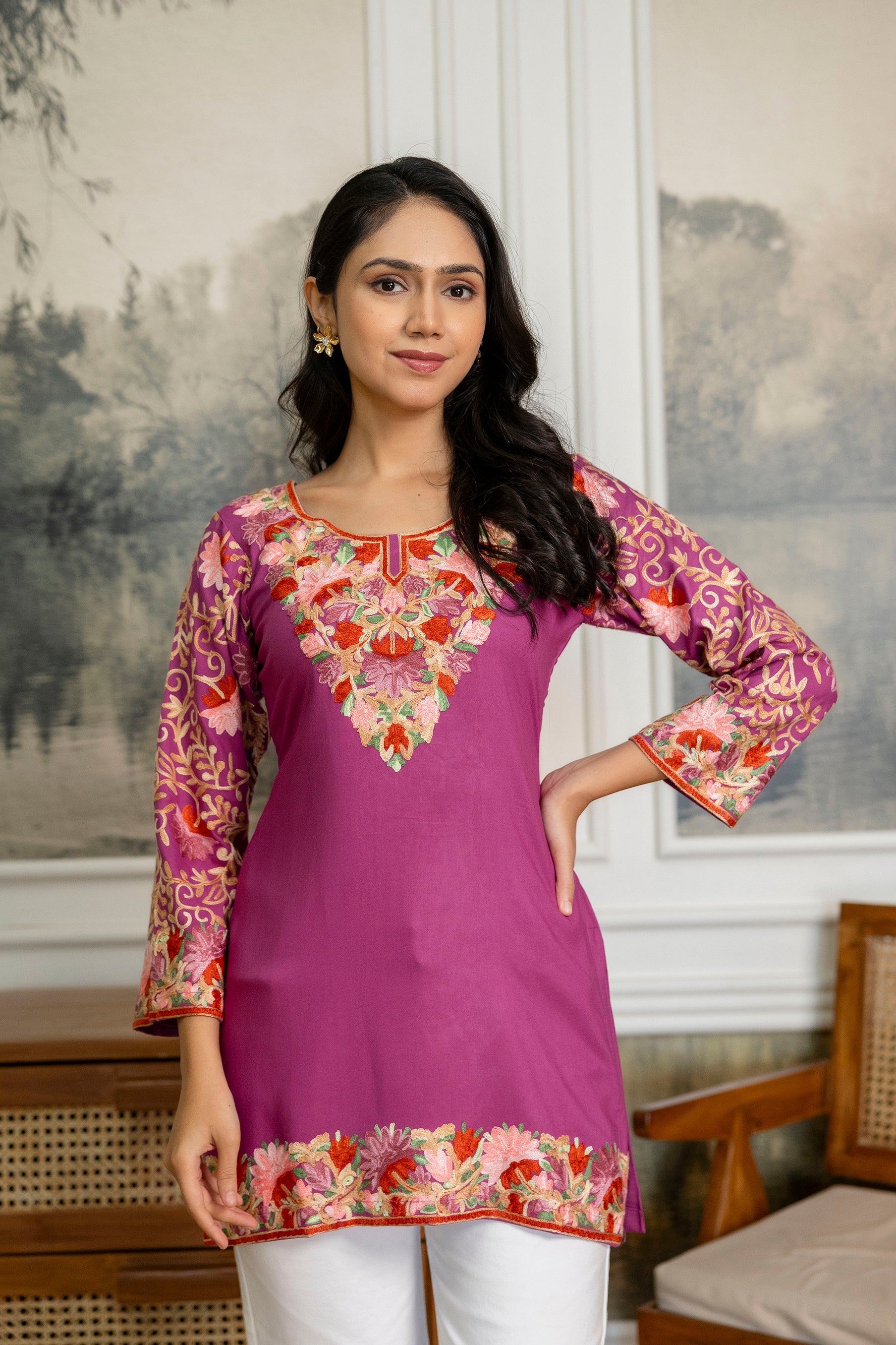 TOK Aari Embroidered Cotton Solid Women's Short Kurta - Purple
